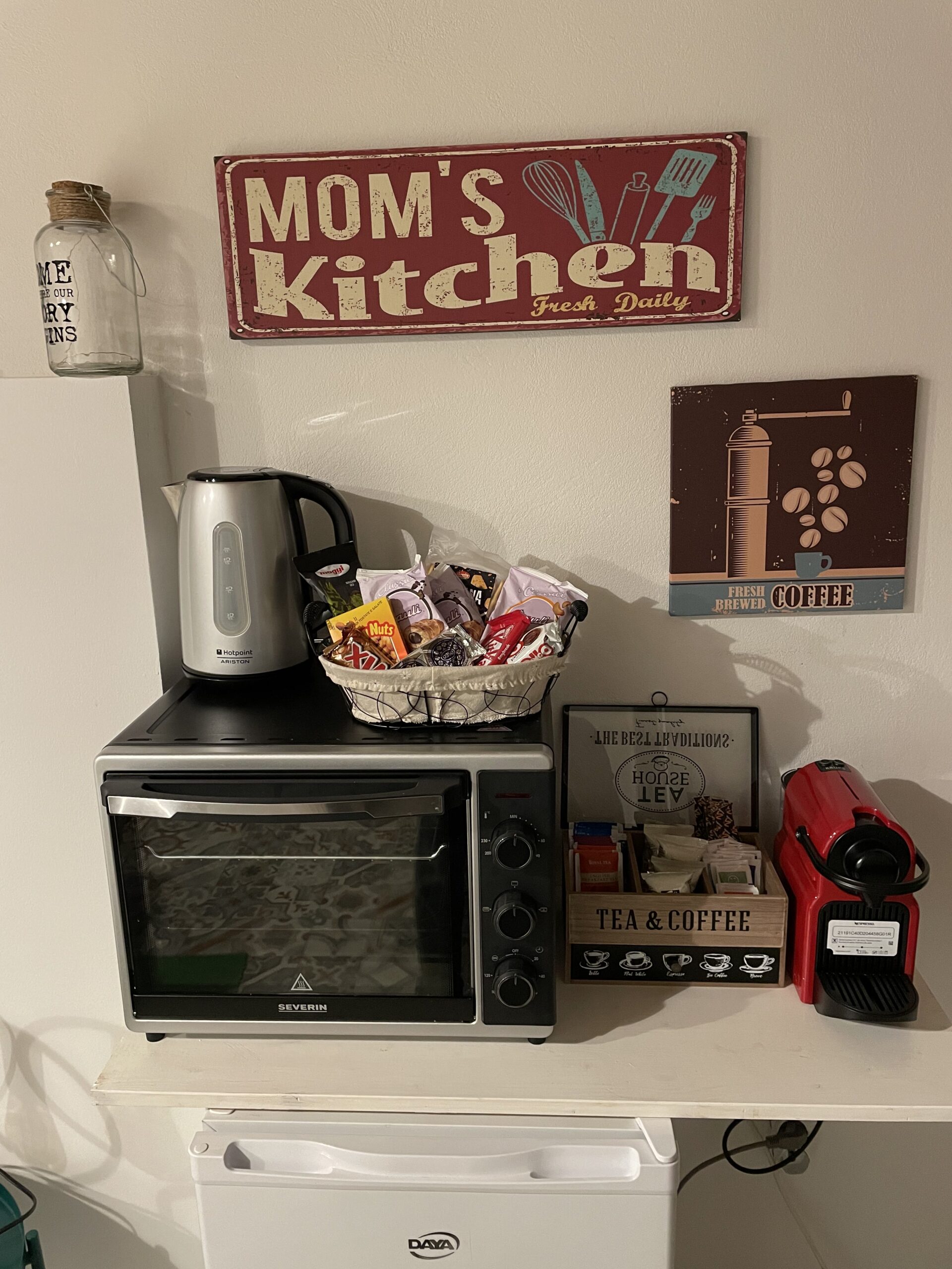 Addirittura il frigo bar, macchina del caffè e angolo snack. Ci ritorneremo sicuramente con tutta la famiglia.